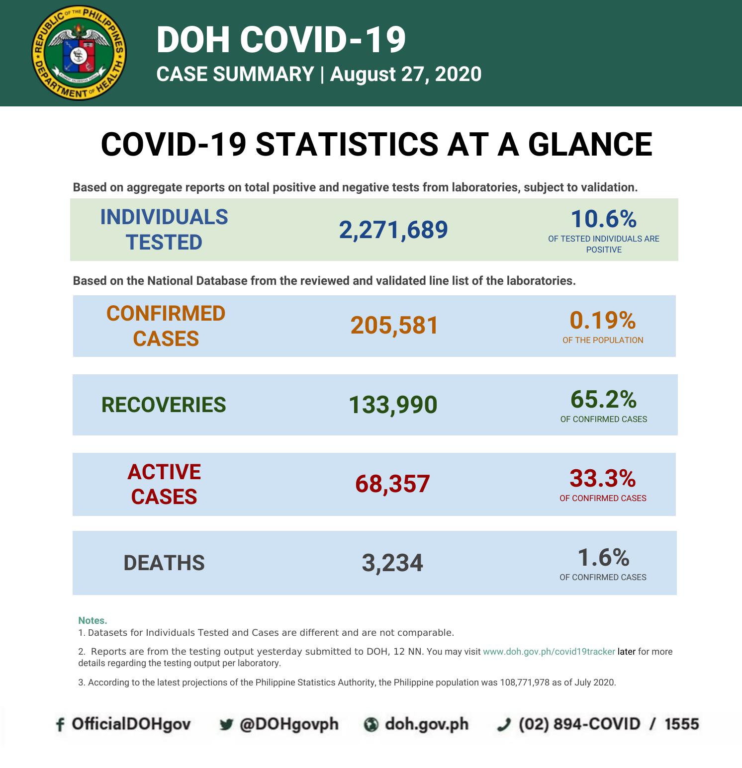 Batay sa case bulletin na inisyu ng Department of Health (DOH) nabatid na nakapagtala pa sila ng 3,249 mga bagong kaso ng virus infection hanggang 4PM nitong Agosto 27.