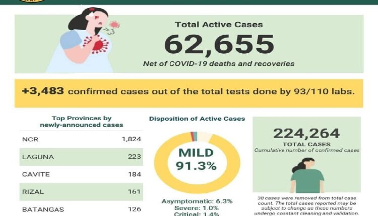 Samantala, umakyat din naman sa 224,264 ang bilang ng mga pasyenteng dinapuan ng virus, matapos na makapagtala pa ng panibagong 3,483 confirmed cases hanggang 4:00PM nitong Martes, Setyembre 1.