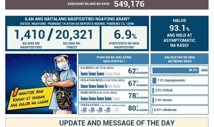 NAKAPAGTALA pa ng karagdagang 1,928 na kaso ng coronavirus disease ang Department of Health (DOH) nitong Linggo, Pebrero 14.
