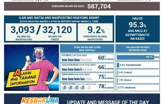 NAKAPAGTALA ng mahigit sa tatlong libong bagong kaso ng COVID-19 ang Department of Health (DOH) nitong Biyernes, Marso 5.