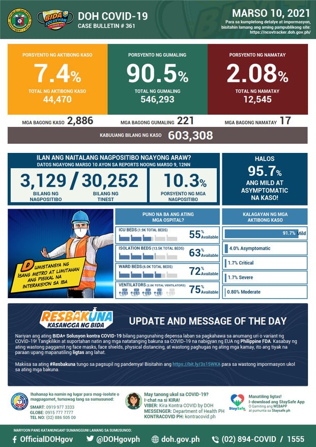NAKAPAGTALA ang Department of Health (DOH) ng 2,886 na karagdagang kaso ng COVID-19 nitong Miyerkules, Marso 10.