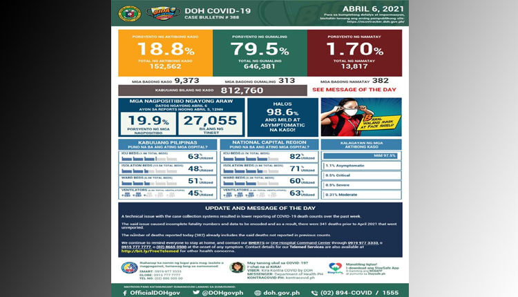 NAKAPAGTALA ang Department of Health (DOH) ng 9,373 na karagdagang kaso ng COVID-19 nitong Martes, Abril 6.