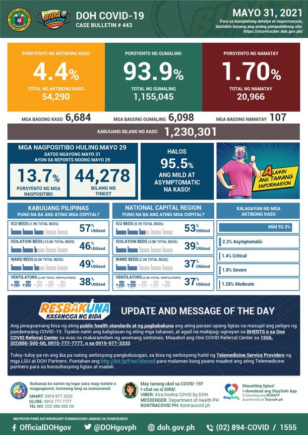 NAKAPAGTALA ang Department of Health (DOH) ng 6,684 na karagdagang kaso ng COVID-19 nitong Lunes, Mayo 31.
