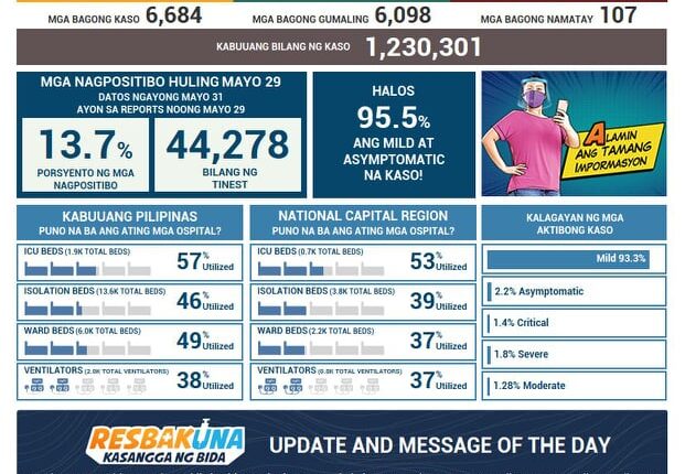 NAKAPAGTALA ang Department of Health (DOH) ng 6,684 na karagdagang kaso ng COVID-19 nitong Lunes, Mayo 31.