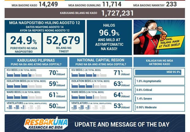 ANG Department of Health (DOH) ay nakapagtala ng 14,249 na karagdagang kaso ng COVID-19.