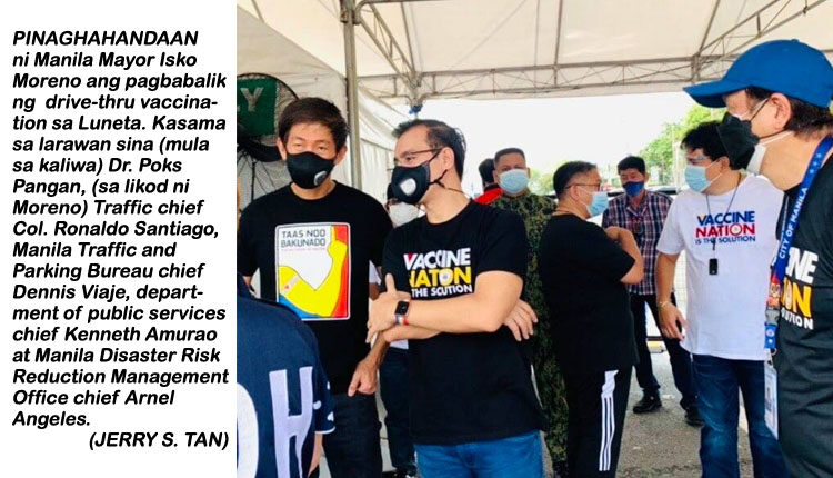 BALIK na uli ang drive-thru vaccination sa kabisera ng bansa sa Lunes, Aug. 16, 2021.