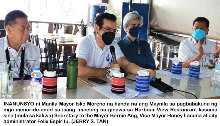 Ito ang pahayag ni Manila Mayor Isko Moreno nitong Lunes, Oct. 11 sa isang meeting na dinaluhan ng lahat ng pinuno ng mga departmento, kawanihan at tanggapan ng City Hall na ginawa sa Harbor View sa tapat ng Manila COVID-9 Field Hospital, kung saan nakipagpulong din siya kay Vice Mayor Honey Lacuna na siyang namamahala sa mass vaccination program ng lungsod kasama si Manila Health Department chief Dr. Arnold Pangan, kaugnay ng paghahanda sa pagbabakuna ng mga nabibilang sa nasabing age group.