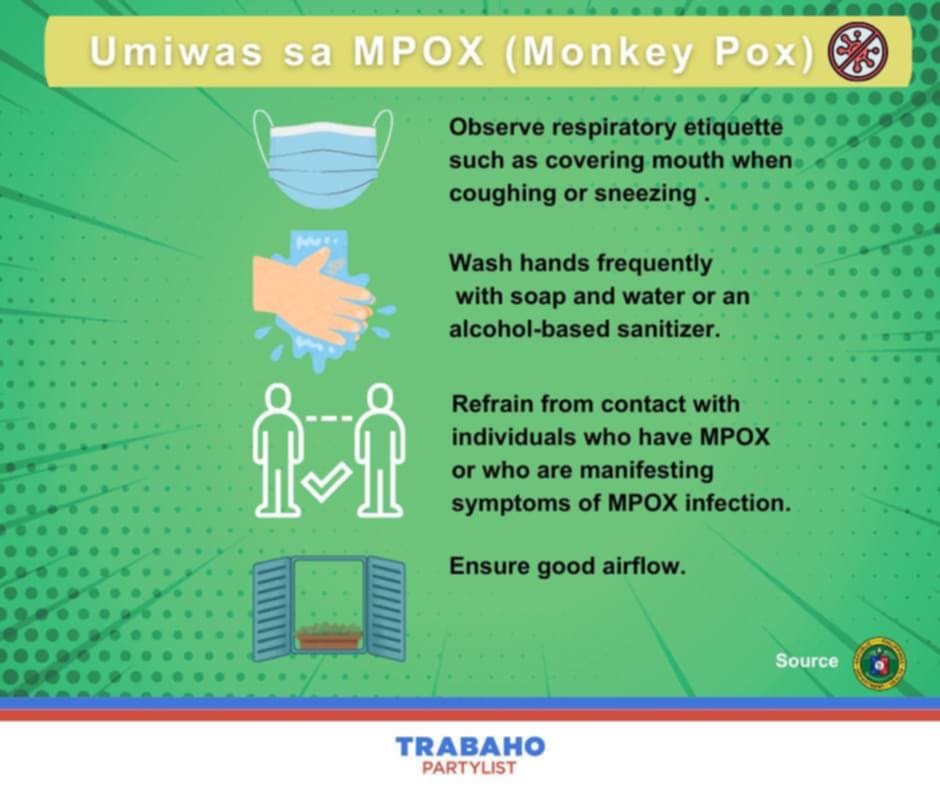 Nananawagan ang Trabaho Partylist para sa agarang pagbaba ng mga health at safety protocols kontra mpox upang maprotektahan ang kalusugan ng mga Pilipinong manggagawa.
