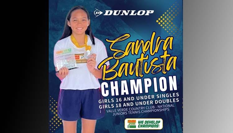 Si Sandra Bautista na tinagurian ding ‘future of Philippine tennis ay matagumpay na na naidepensa ang titulo sa Tennis Girls Secondary ng Regional Athletic Association Meet( RAAM)2025 para sa kanyang momentous back- to -back peat upang maging pambatong atleta muli ng Rehiyon( CALABARZON) para sa nalalapit na Palarong Pambansa ngayong summer sa Làoag City , Ilocos Norte.