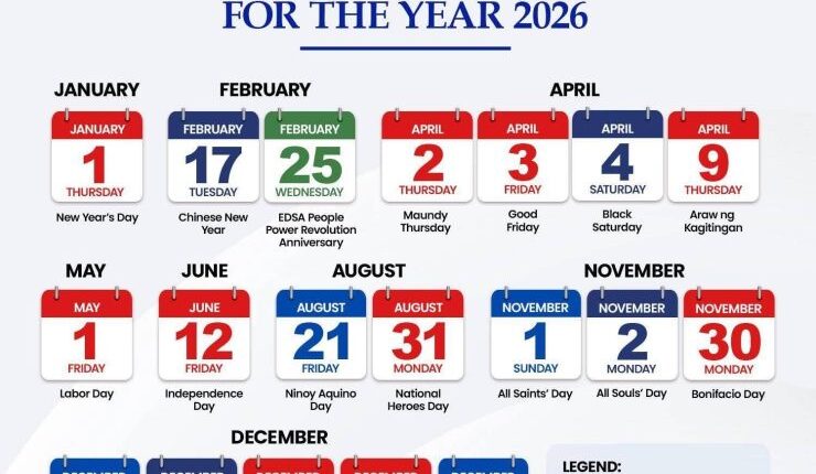 Ito ang mga regular holiday at espesyal na araw para sa 2026 na gaganapin sa bansa: