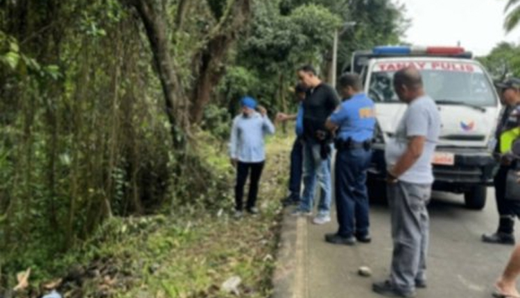 Balot ng masking tape ang ulo at nakagapos ang 2 kamay ng isang lalaki na biktima ng “summary execution” sa gilid ng Sampaloc Road, Tanay Rizal.