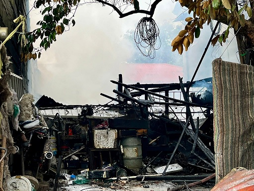 Samantala patuloy na nagsasagawa ng imbestigasyon, ng mga bumbero, kung saan at paano nagsi-mula ang sunog,at pinsala ng naganap na sunog.(Thony D. Arcenal)