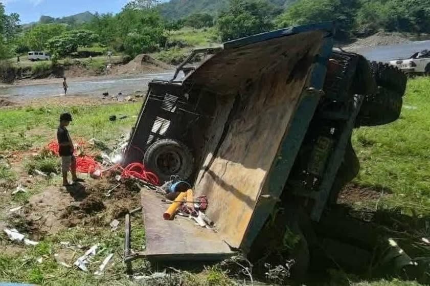 Gumulong ng ilang beses ang dump truck bago lumagpak ng patagilid malapit sa ilog sa Sitio Mansitak, Barangay Kalamtukan, Bayawan City.