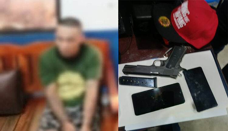 Nakumpiska sa suspek ang kalibre 45 baril na may Serial #1963275, isang magazine na may 7 bala at Yamaha Mio na walang plaka.