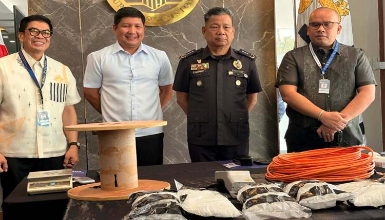 IPRINISINTA nina (mula sa kaliwa) BOC Port of Clark District Collector Jairus S. Reyes, PDEA Region III Director Jigger B. Montallana at BOC Enforcement Group Deputy Commissioner Nolasco K. Bathan at BOC Spokesman at Deputy Chief of Staff Atty Chris Noel Bendijo sa media ang nasamsam na P30.780 milyong halaga ng “relaxant” Ketamine na diumano ay hinahalo sa iba pang iligal na droga at ginagamit tuwing may mga wild party kasabay ng pagsagawa ng turn over sa PDEA. (BONG SON)